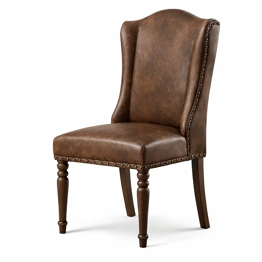Der Stuhl ist aus strapazierfähigem Kunstleder gefertigt. Die Beine bestehen aus Massivholz.