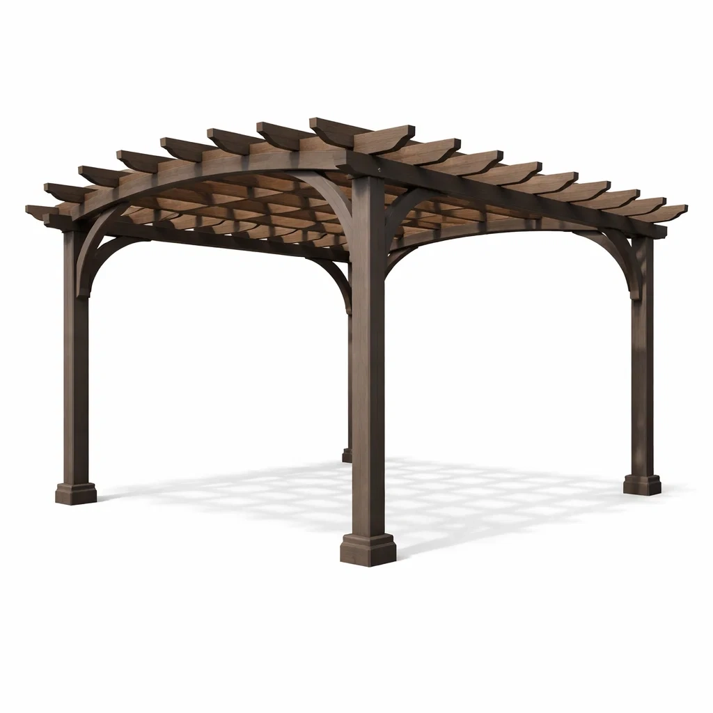 Diese Pergola besteht aus hochwertigem Eichenholz.